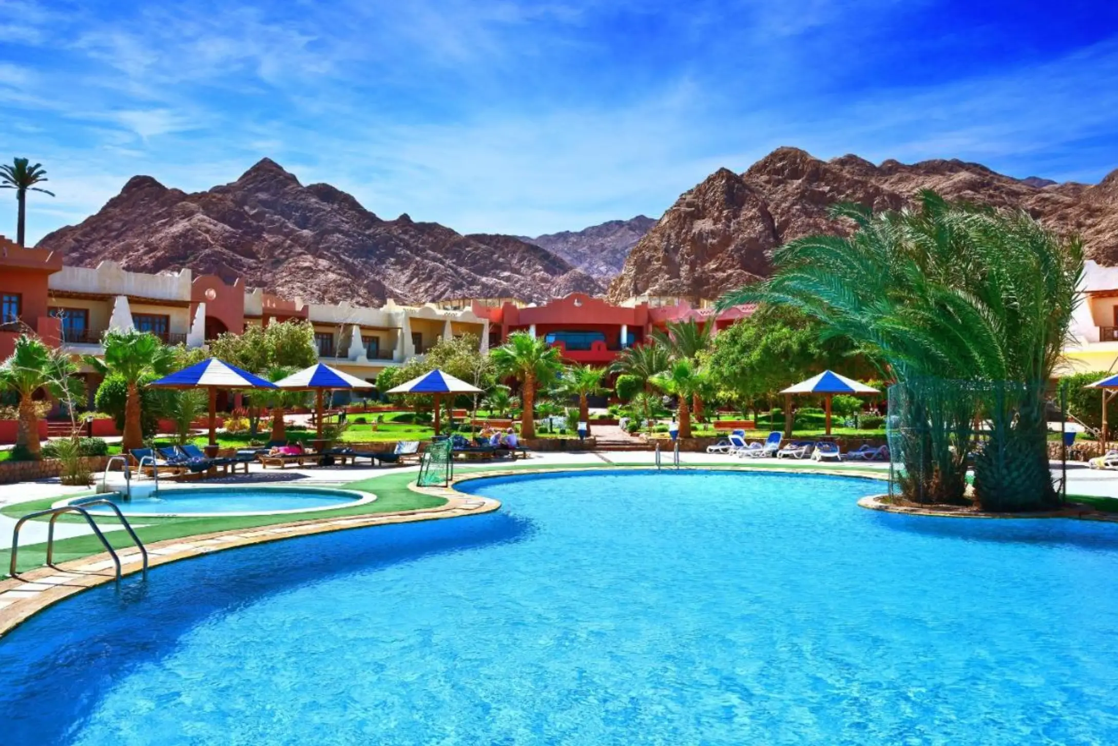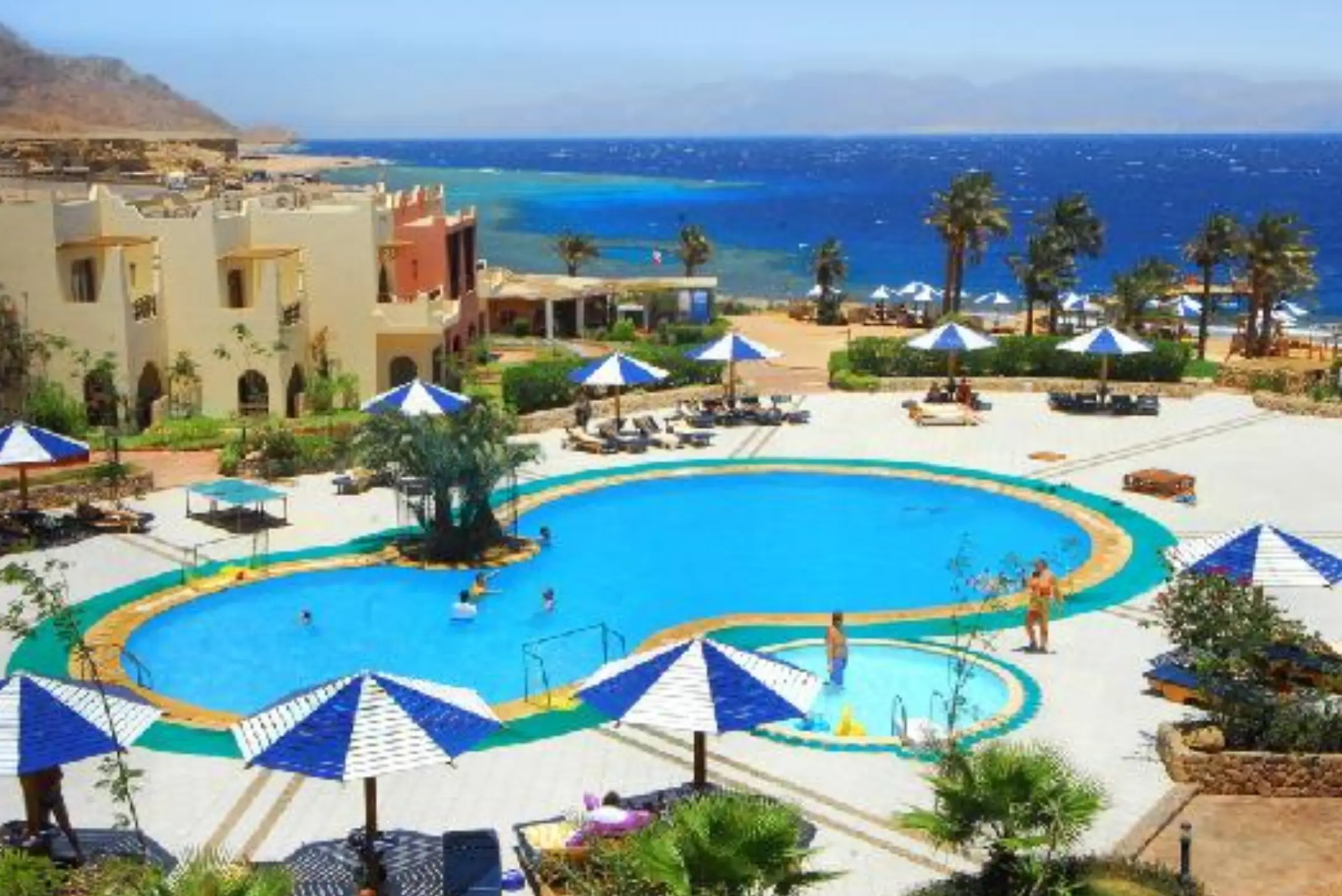 - الفئة: فندق 4 نجوم (Tropitel Dahab Oasis) – إطلالة وخدمة ممتازة.